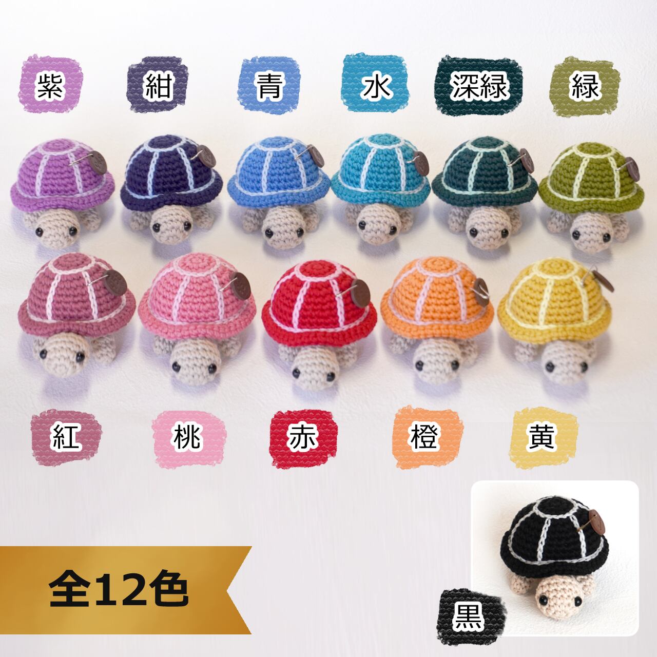 あみぐるみ かめ小 黒 (全12色)